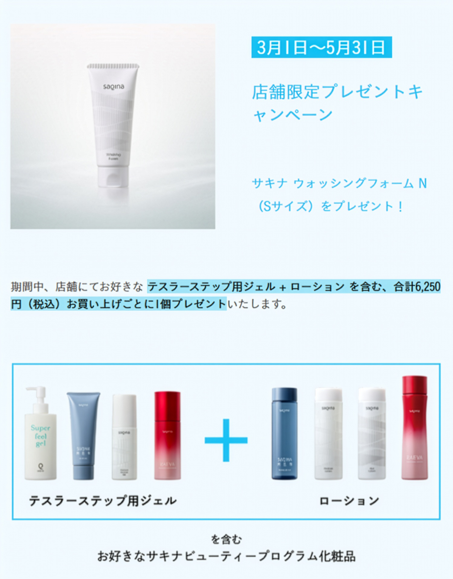 今後もより一層「年々美肌」に近づいていただけることを願い、エステマシンとサキナビューティープログラム化粧品によるお手入れの習慣化を応援する取り組みを3月1日(日)より、全国のビューティーラウンジ/ビューティースペースで行ってまいります。