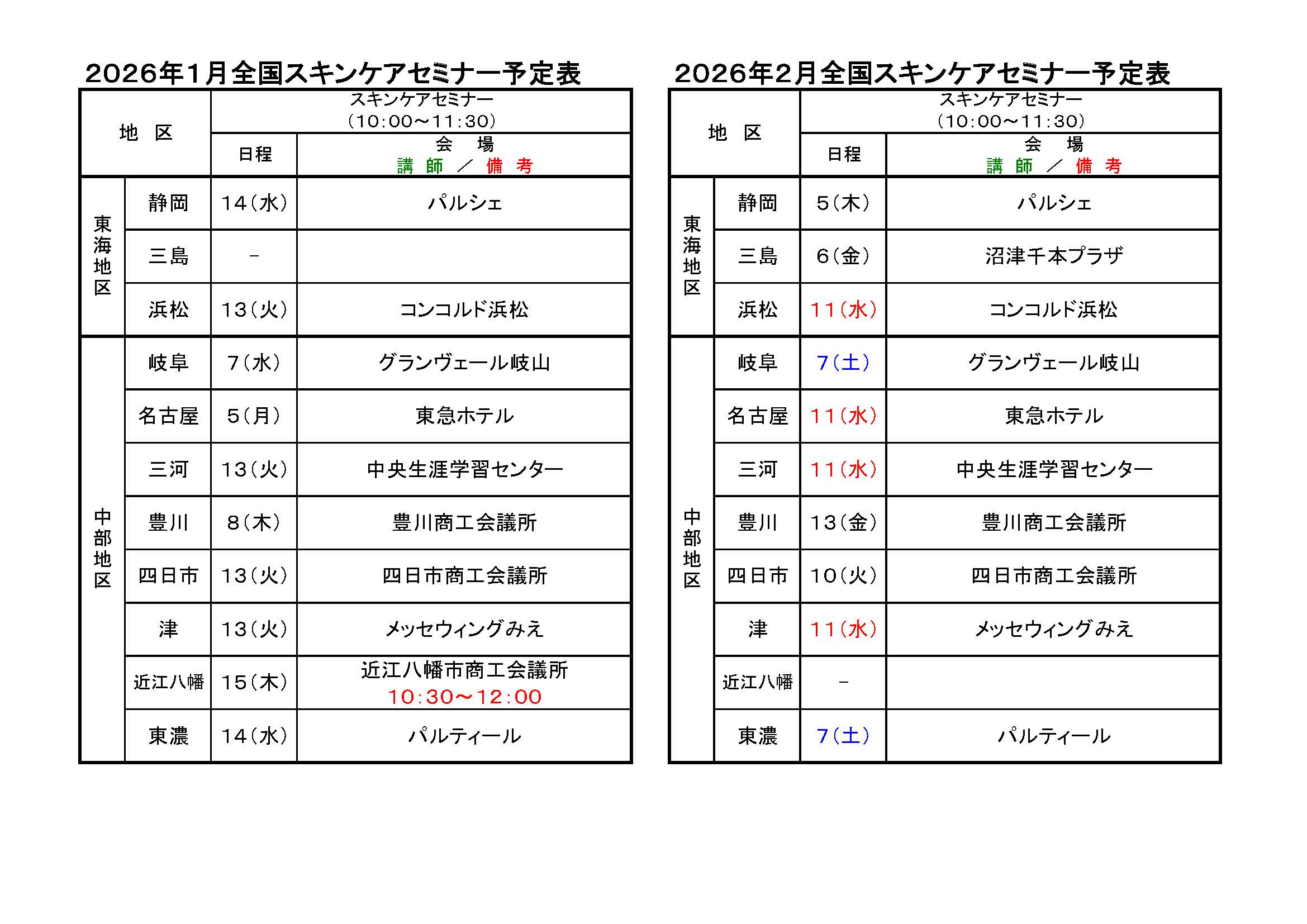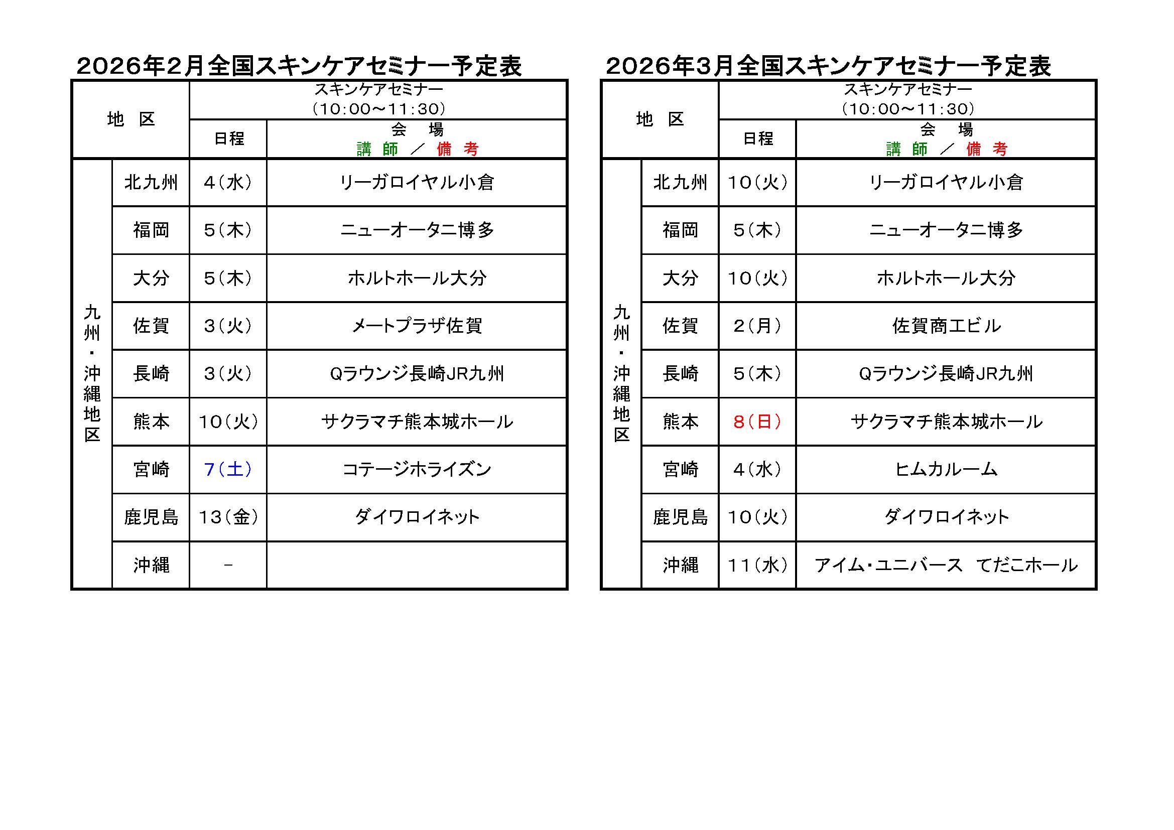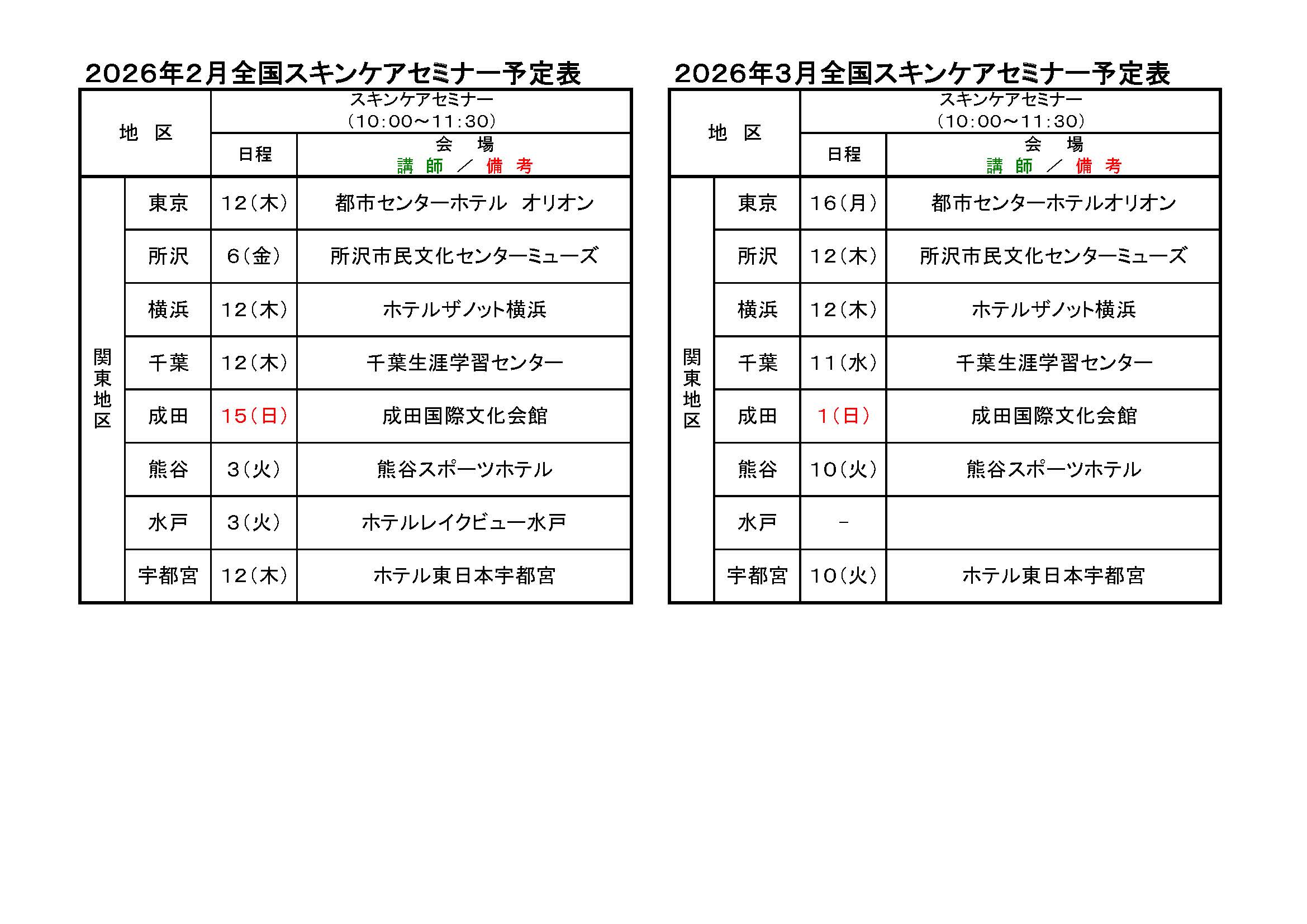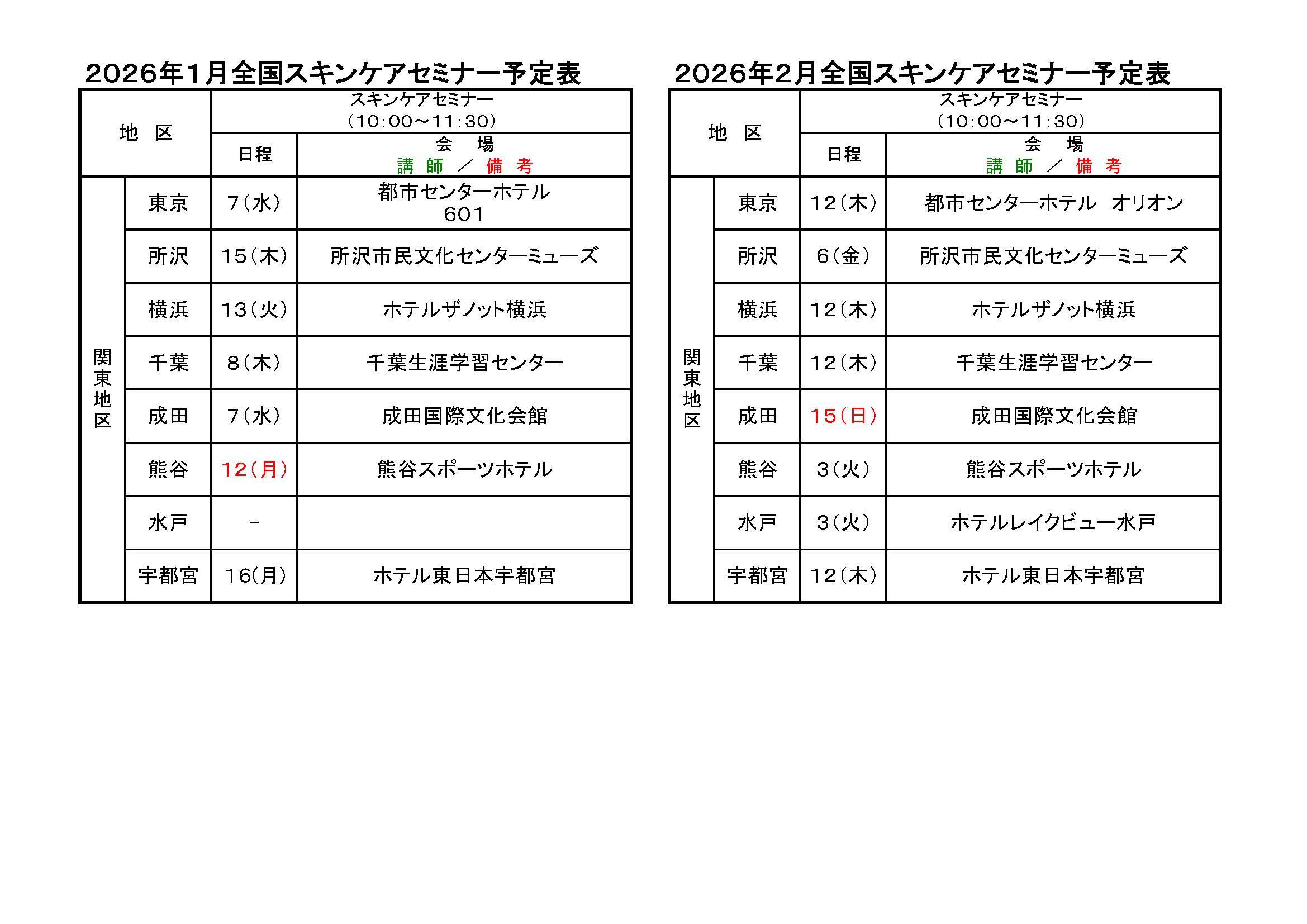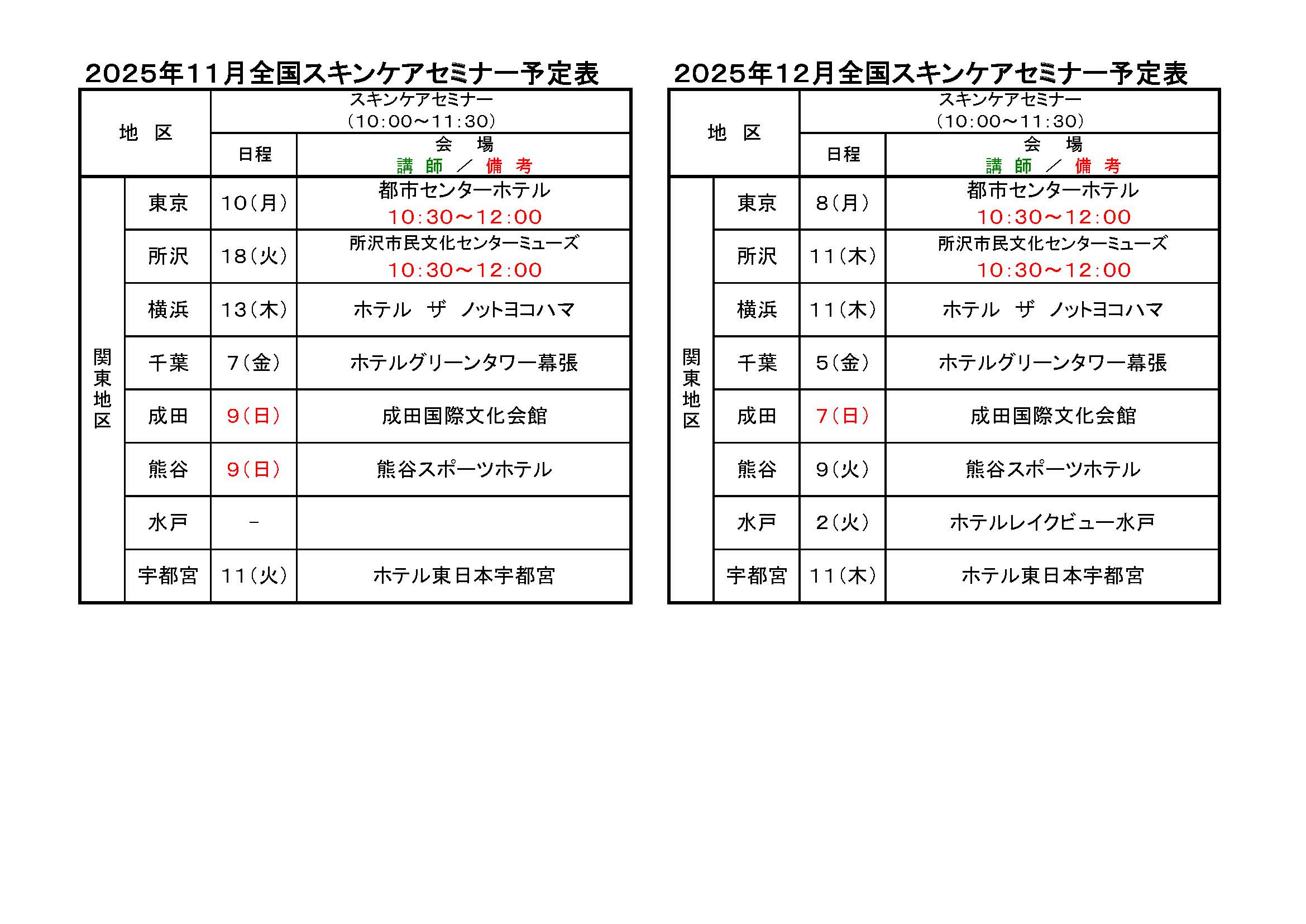 日程及び会場は変更になる場合がございます。最寄りのサキナビューティーラウンジ/スペースにてご確認頂きますようお願いいたします。
