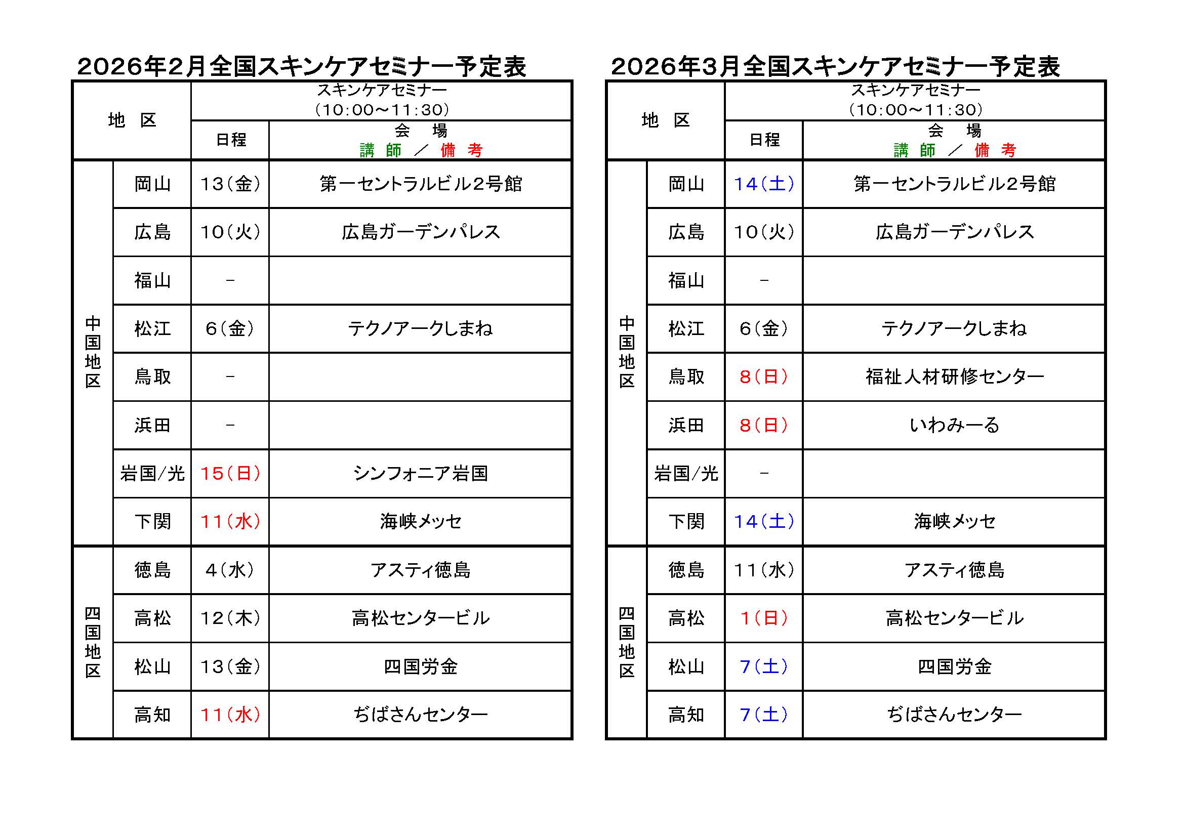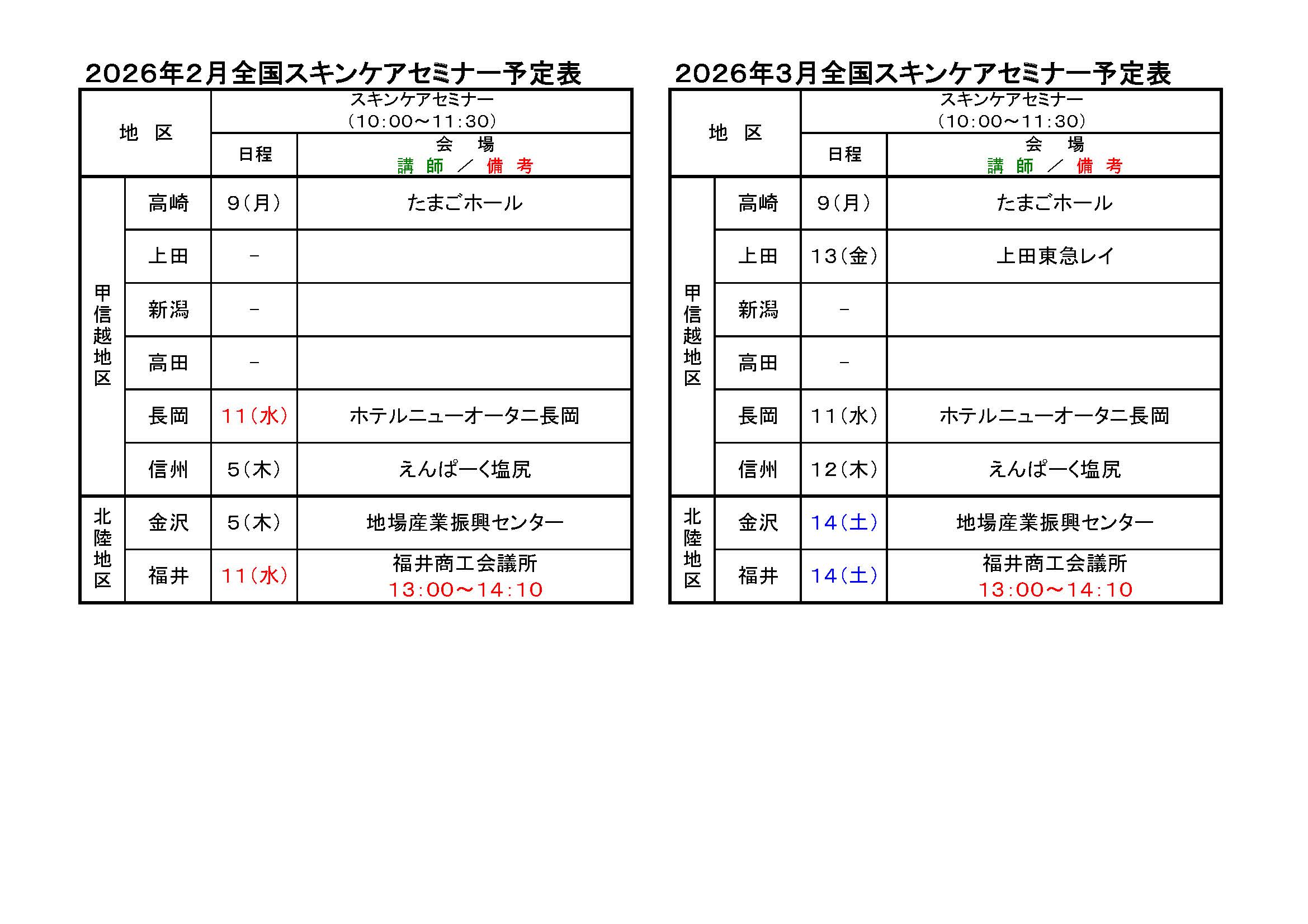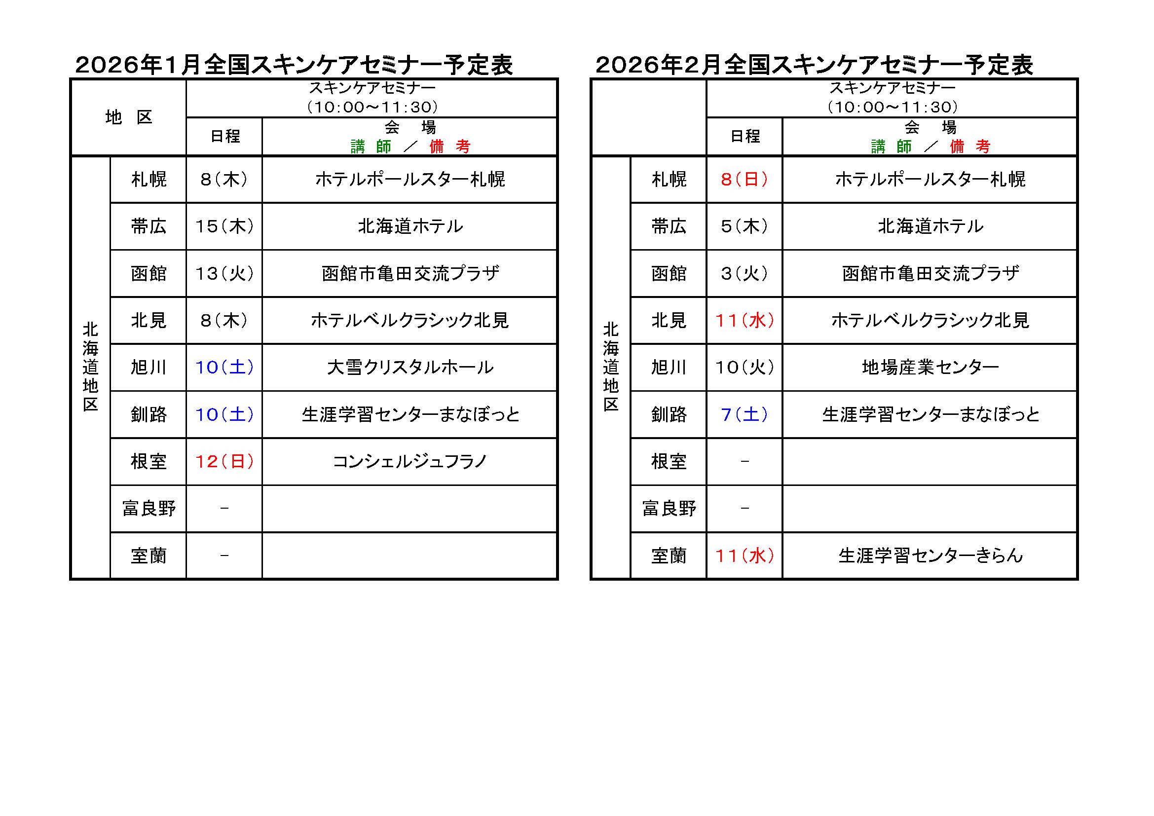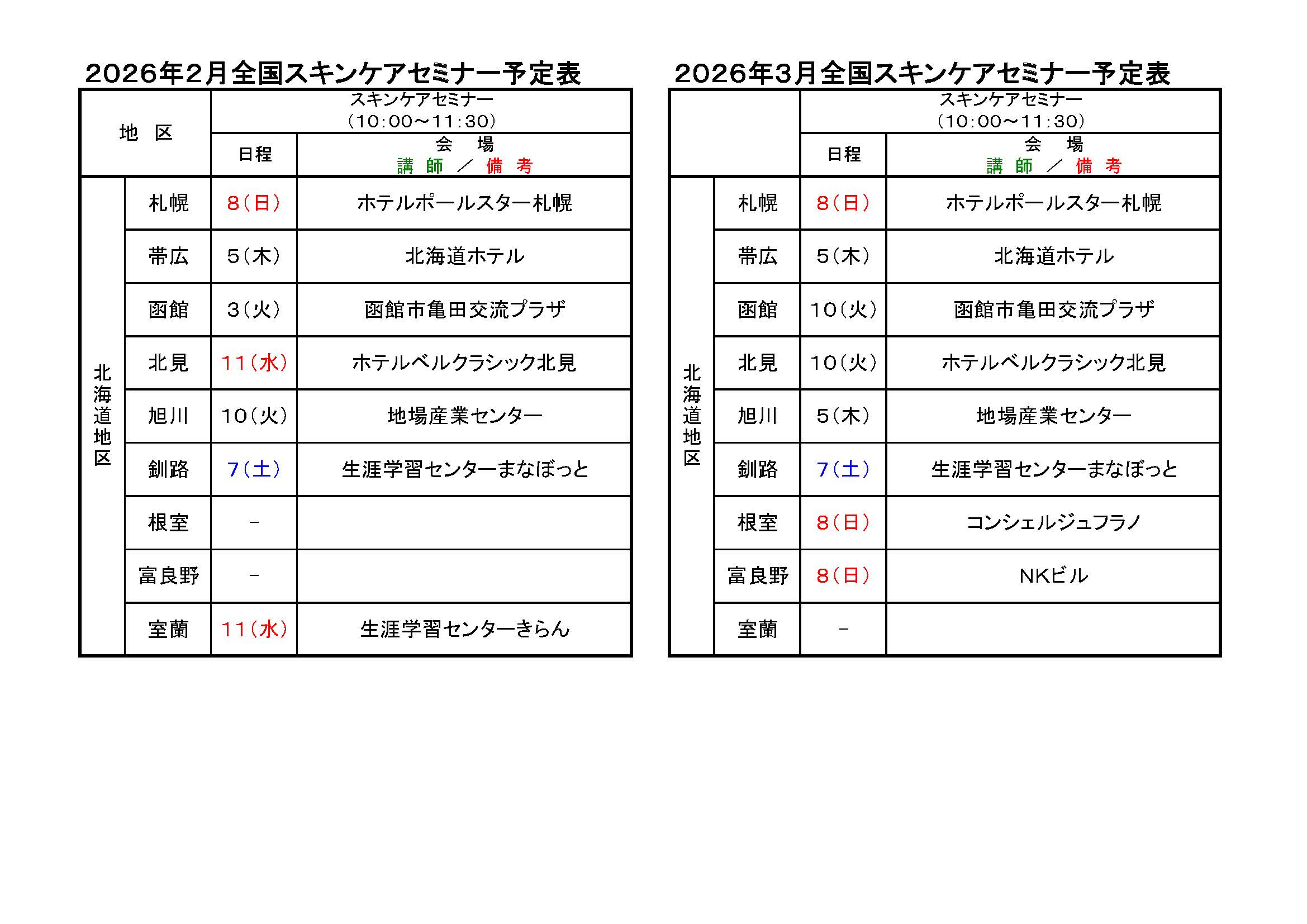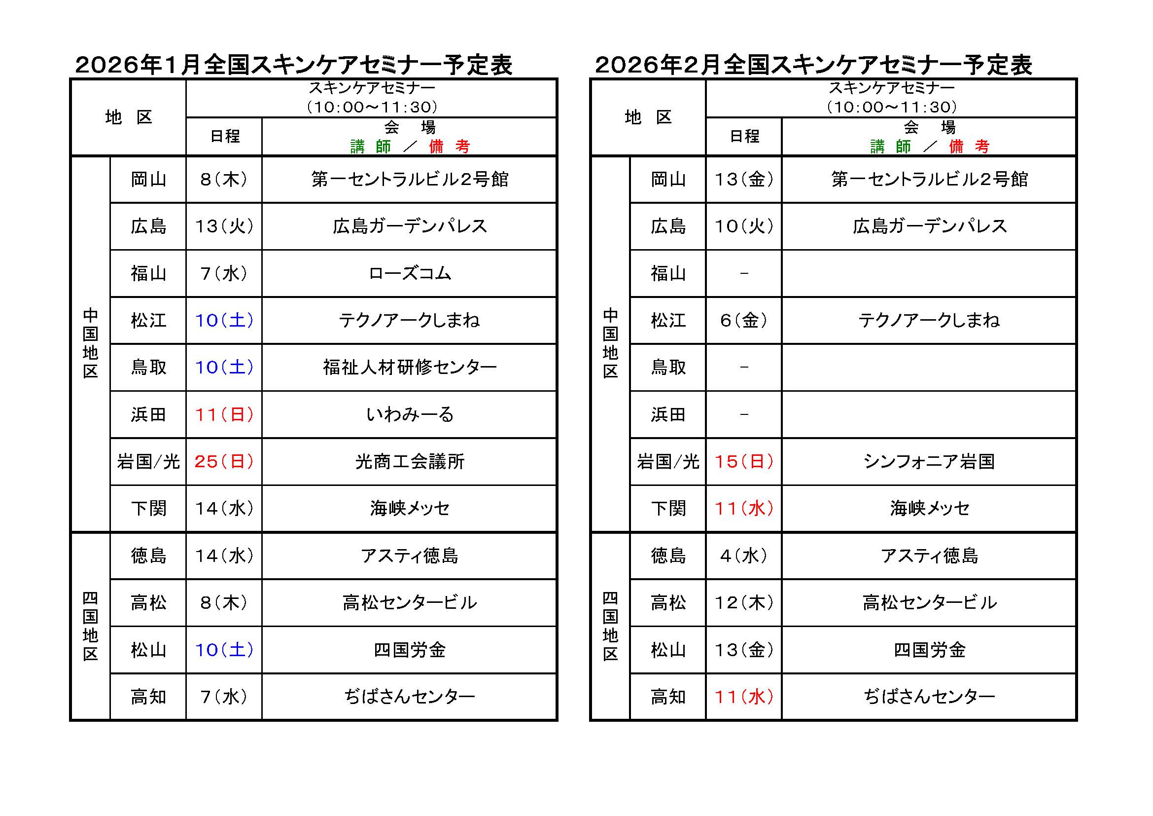 日程及び会場は変更になる場合がございます。最寄りのサキナビューティーラウンジ/スペースにてご確認頂きますようお願いいたします。