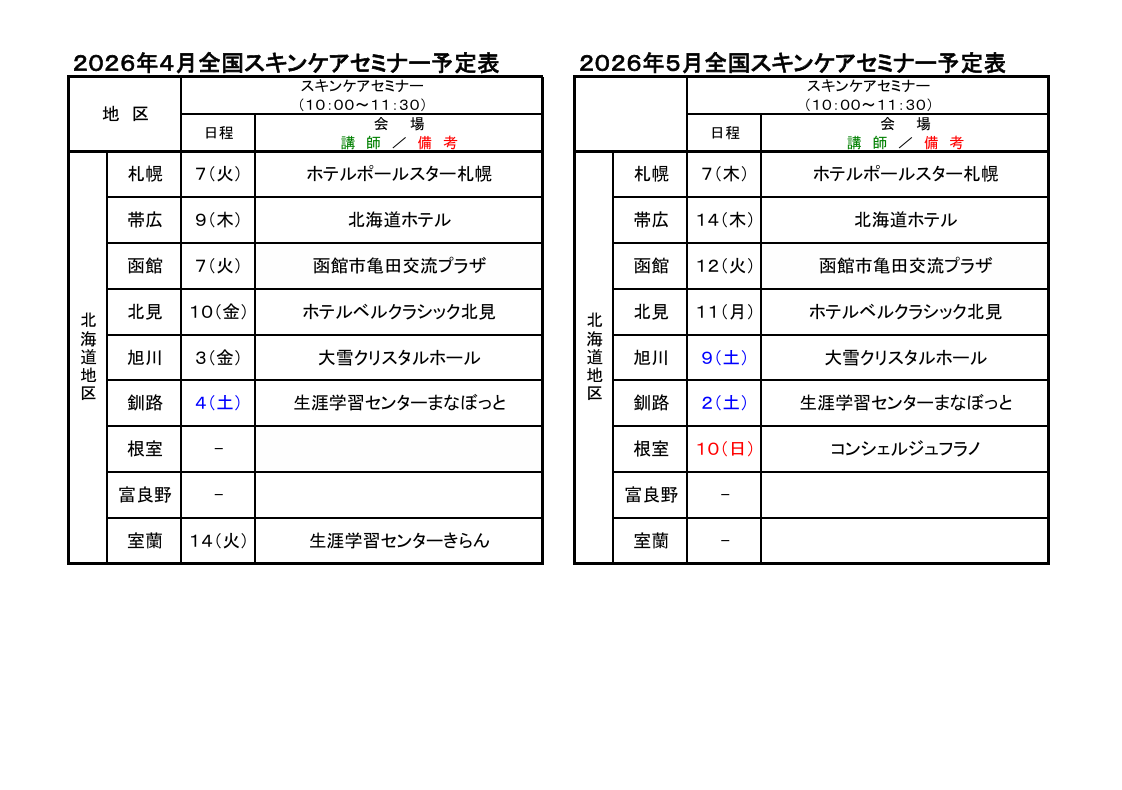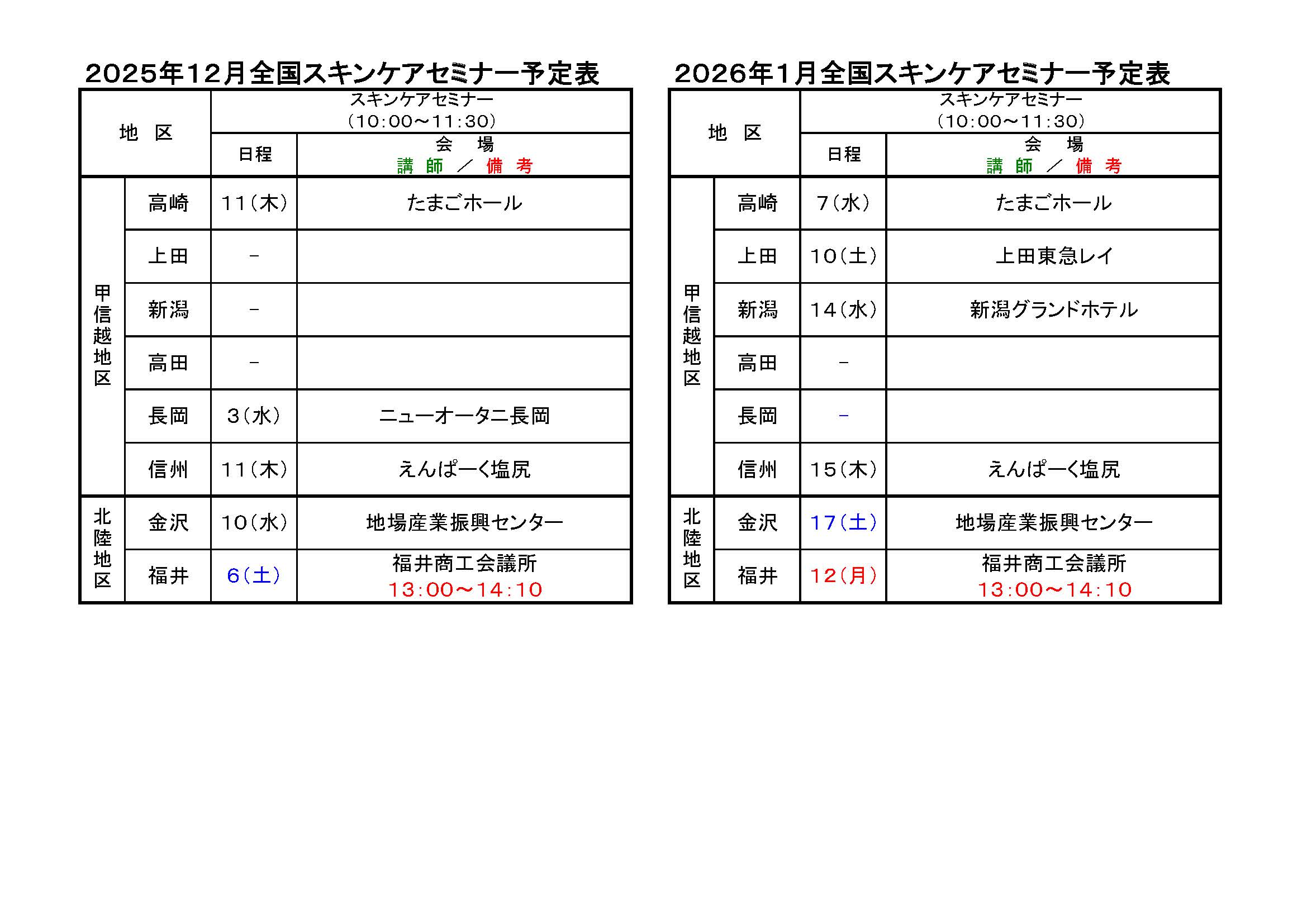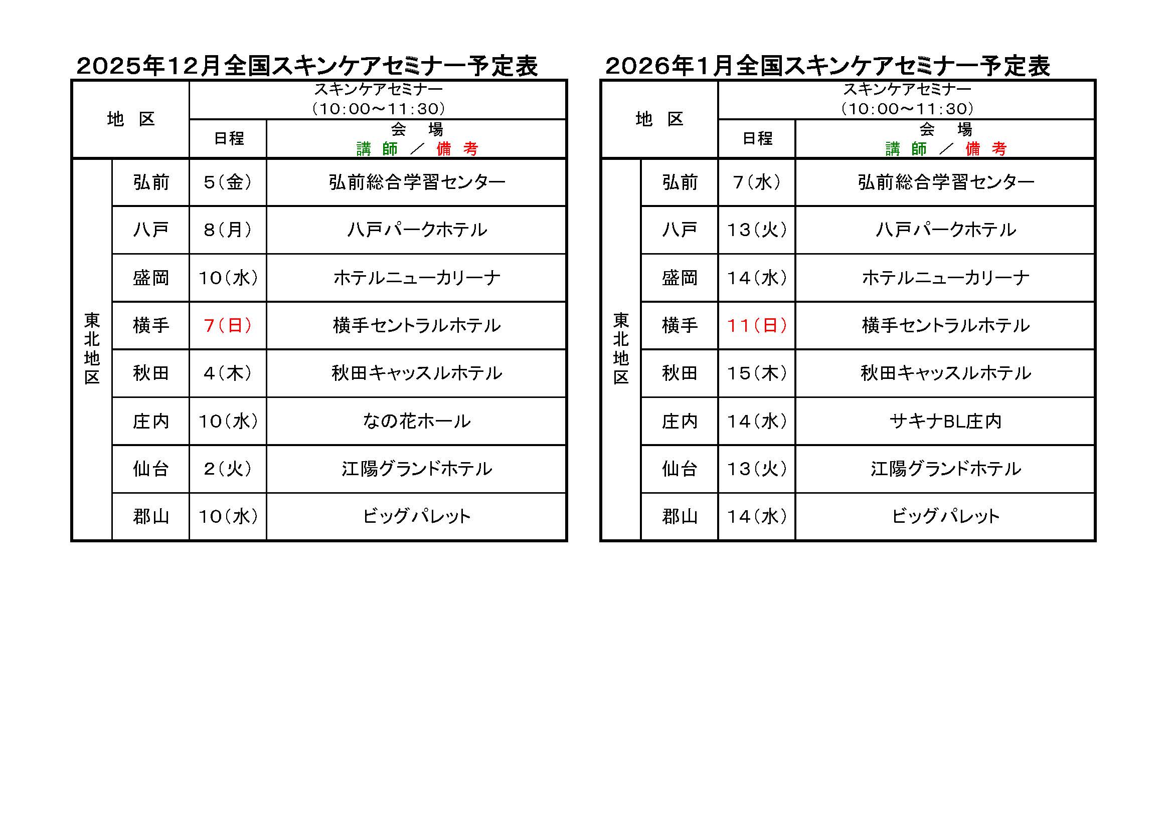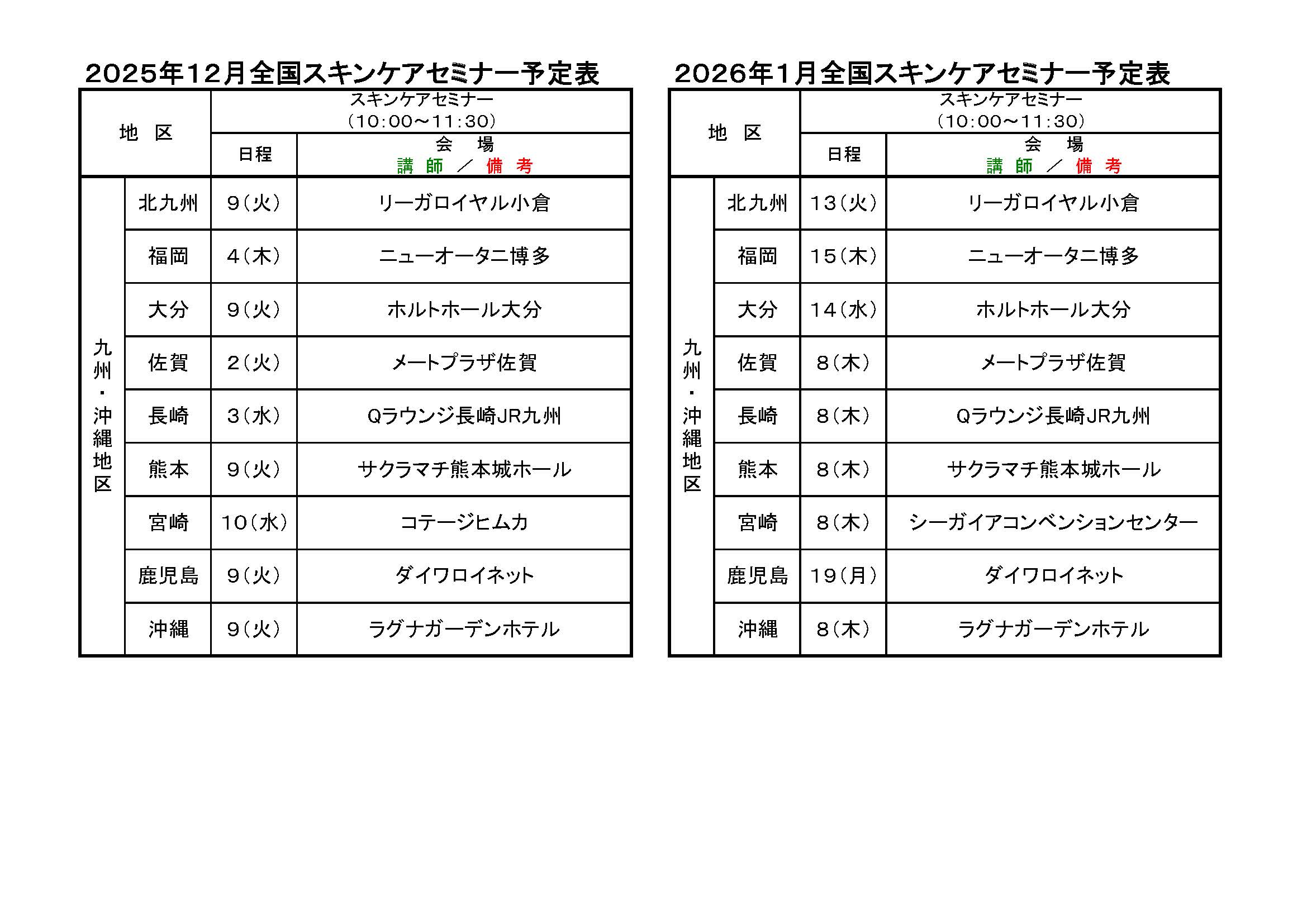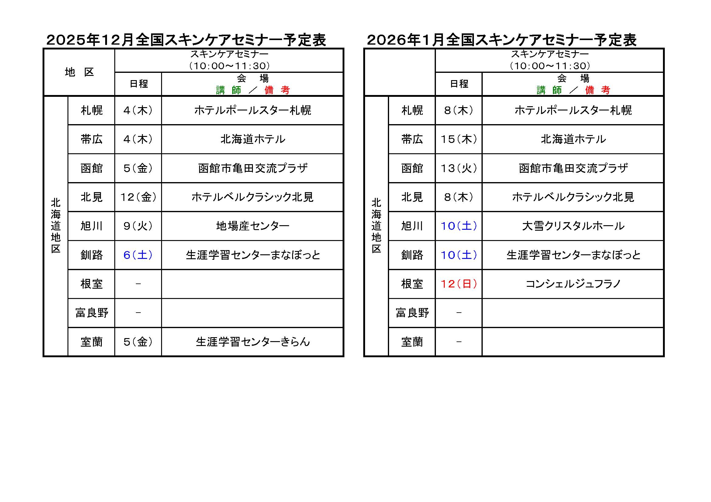 日程及び会場は変更になる場合がございます。最寄りのサキナビューティーラウンジ/スペースにてご確認頂きますようお願いいたします。
